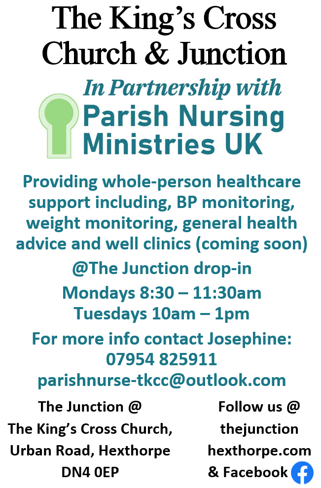 This service provides whole-person healthcare advice and support for residents through The King’s Cross Church and Junction. This includes blood pressure monitoring, weight monitoring, mental health support, general health advice and support, and Well Clinics starting in the next couple months. Come to our drop-in Mondays 8:30-11:30pm, Tuesdays 10am-1pm, or get in touch with Josephine (see below) to discuss any other health related needs or concerns.